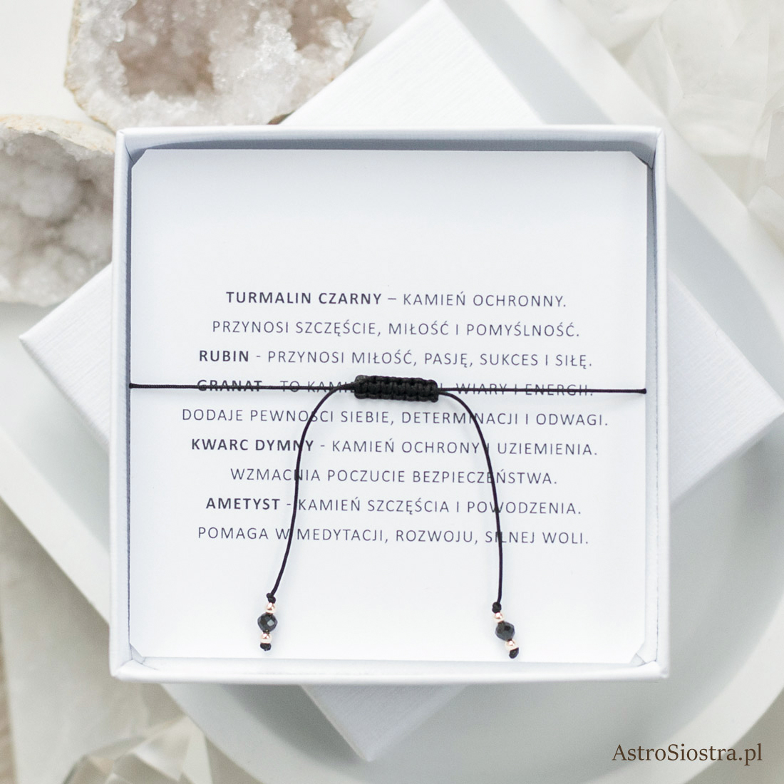 KAMIENIE: Turmalin Czarny, Rubin, Granat, Kwarc Dymny i Ametyst.
